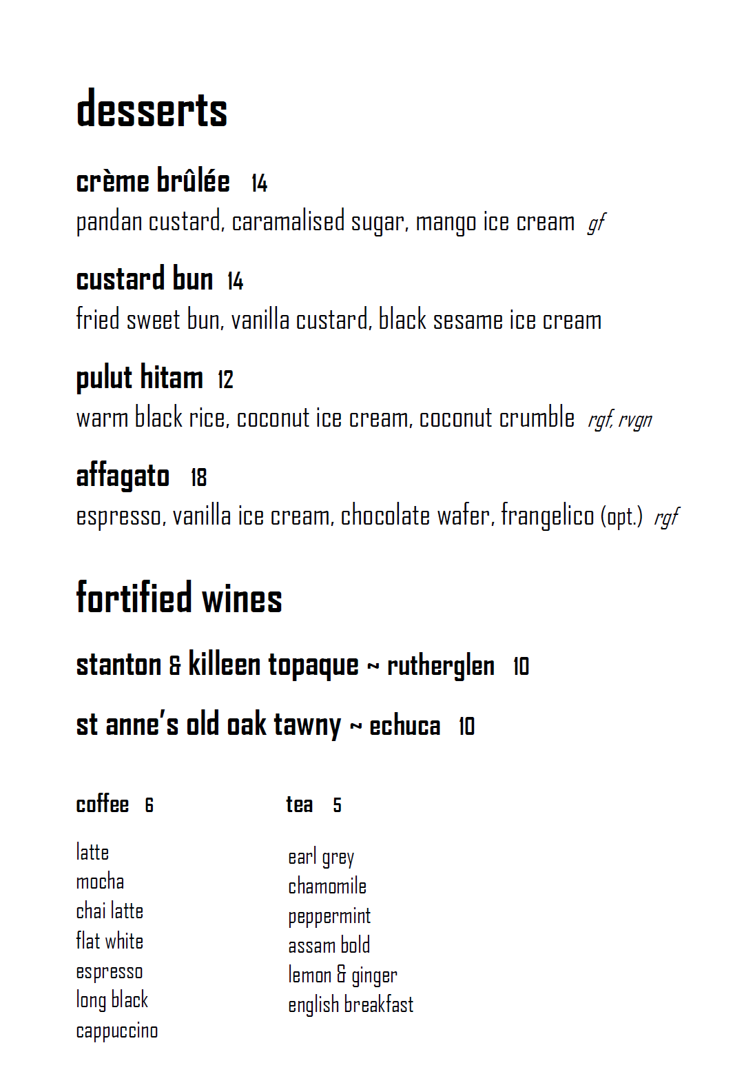 Dessert Menu